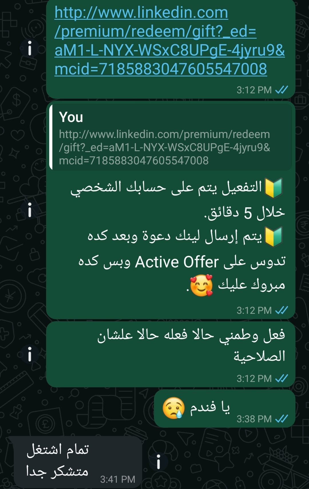 ✅يتوجب عدم وجود اشتراك حالي على الحساب في خدمة لينكدإن بريميوم، وفي حالة وجود اشتراك انتظر إنتهائه ثم فعل العرض.